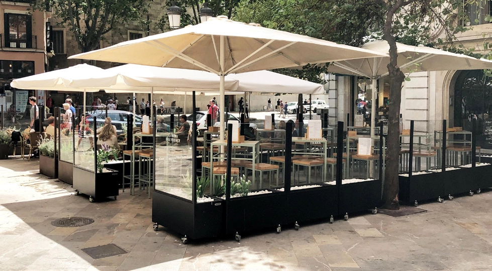 Pérgola con techo móvil de cristal y cerramiento acristalado en Valls