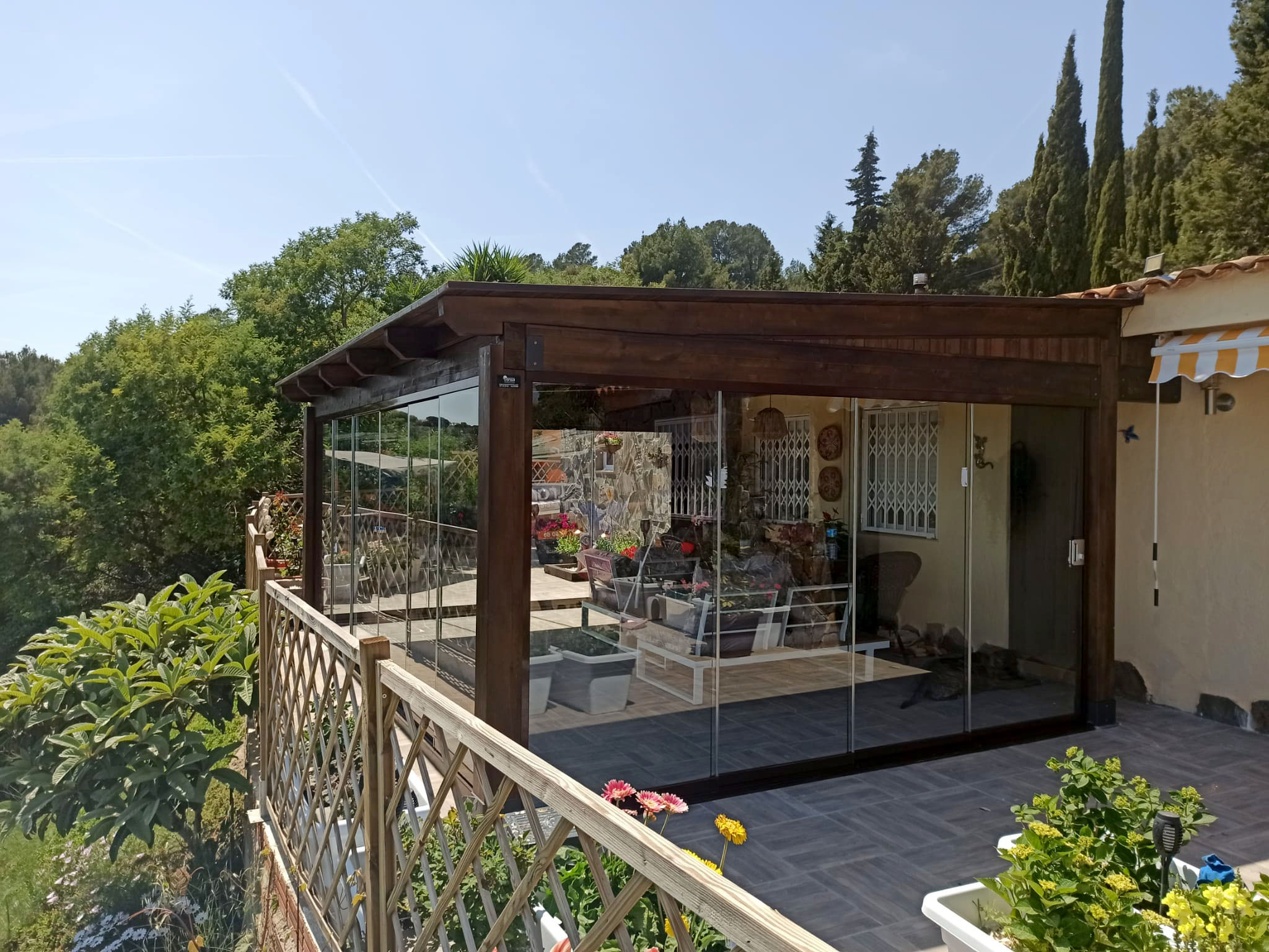 Utiliza elementos que no se tengan que montar y desmontar continuamente. La clave son las pérgolas, por su capacidad de adaptación a todas las estaciones. Gracias a la variedad de materiales, accesorios y sistemas disponibles, puedes disfrutar de tu espacio exterior todo el año, independientemente de las condiciones climáticas. En verano, proporciona sombra y frescura; en invierno, protección y confort.
