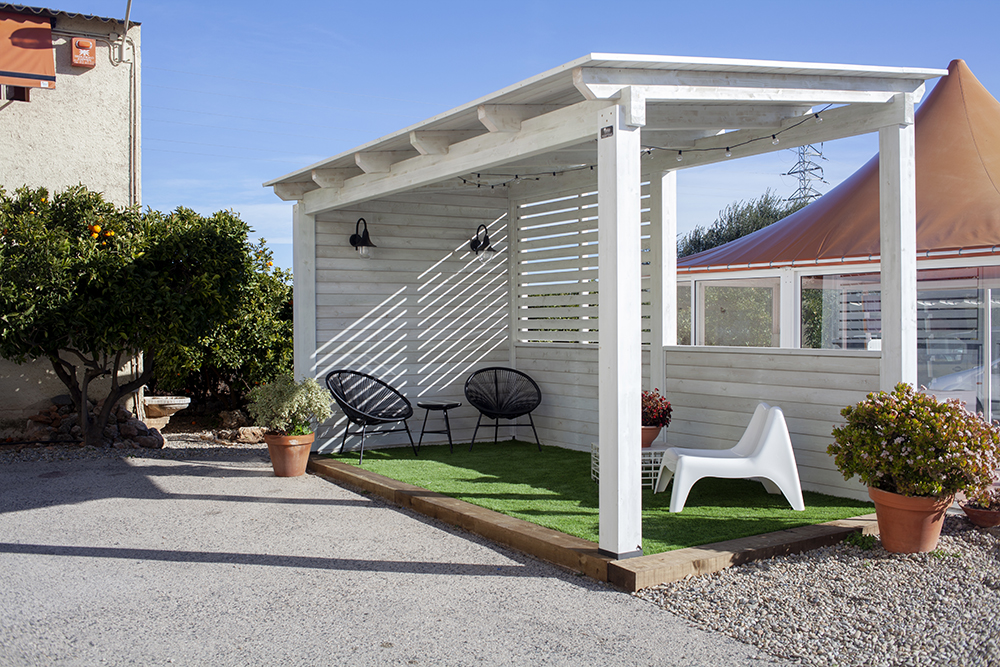 Adaptamos las estructuras, tanto de madera como de aluminio, y las lacamos de forma personalizada además de confeccionar todos los tejidos a medida, siempre usando materiales y tejidos de primera calidad, para poder así ofrecer garantía de fiabilidad y durabilidad.